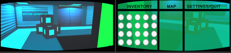 The images above show the visor UI element that I stuck to the mask, helping to increase the immersion that your vision is somewhat restricted due to you wearing a mask, on the image to the right above here shows the layout of the inventory/menu that will help guide the player. It shows the inventory grid to the left, and will be able to show you details on the right once you hover over a resource that you have gathered, it also contains tabs for a Map and your settings and quit button which will allow the player to switch the settings while in gameplay as well as quit more efficiently. I really liked how it turned out, and it was quite challenging to implement, and its not 100% complete as I still need to implement the resource information as well to drop materials and finally to check if the inventory is full or not which will all be implemented in the future.