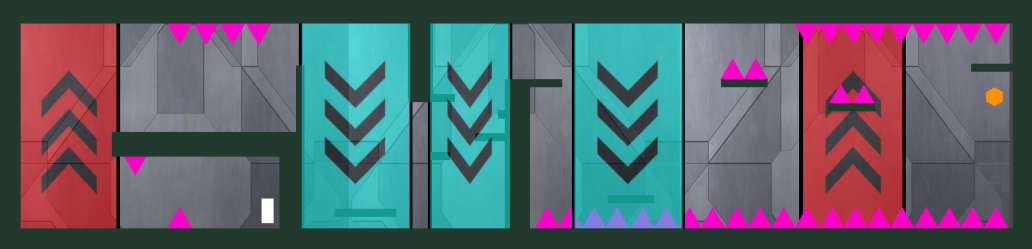 Spikes - Spikes are a common obstacle and hazard found in various platformers so I thought, why not add these, it increases the challenging aspect of the game and could be used in more ways, for example in the second section of the levels, the floor and ceiling and some sides of the platforms are covered by spikes, making the player has to rely on accurate precision while also utilising the main mechanic for this game.