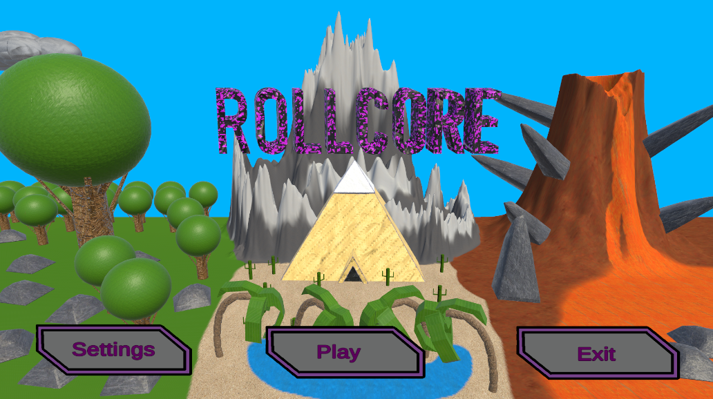 Rollcore is a game about a player controlling a ball in a low poly world, encountering various enemies to combat them and collecting keys to unlock new exciting areas and vibrant biomes (such as a desert, snow, volcano etc with all having their unique set of enemies and appearance) with personalised environmental features for example the desert containing sinkholes that slow the player in as well as lava that slowly depletes the players health. Each biome consists of a temple somewhere hidden deep within their designated biome. Each temple has a different characteristic that is themed around their respective biome which further builds on the atmosphere of the world and deeper endures the player into the world.